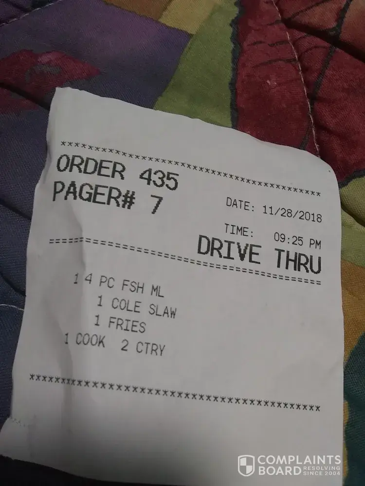 Captain D's has left an official reply on this complaint.
