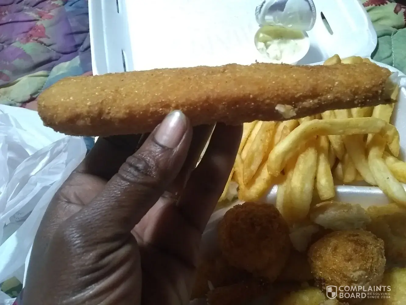 To whom it may concern I have just purchased a meal from the local captain D's here in Greenville Ms and I ordered the four piece two country fried and the other two battered dipped. When I first started my complaint I didn't know that it had to be up to 350words just so I can get a reply, which makes no sense because all complaints should be answered accordingly. But anyways the fish that I received seemed to be battered fish that was dipped in meal and then fried it looks like a hard pizza roll and it is not acceptable for a meal that was ordered from this type of establishment. So if you would kindly please get in contact with this restaurant and inform them that I know that drive thru time matters to them but the quality of my food matters to me! So if this is not enough words for you to contact me accordingly I will not be patronizing this establishment and will let other citizens in this know how this basis being run thank you and good day😒😒😒😒