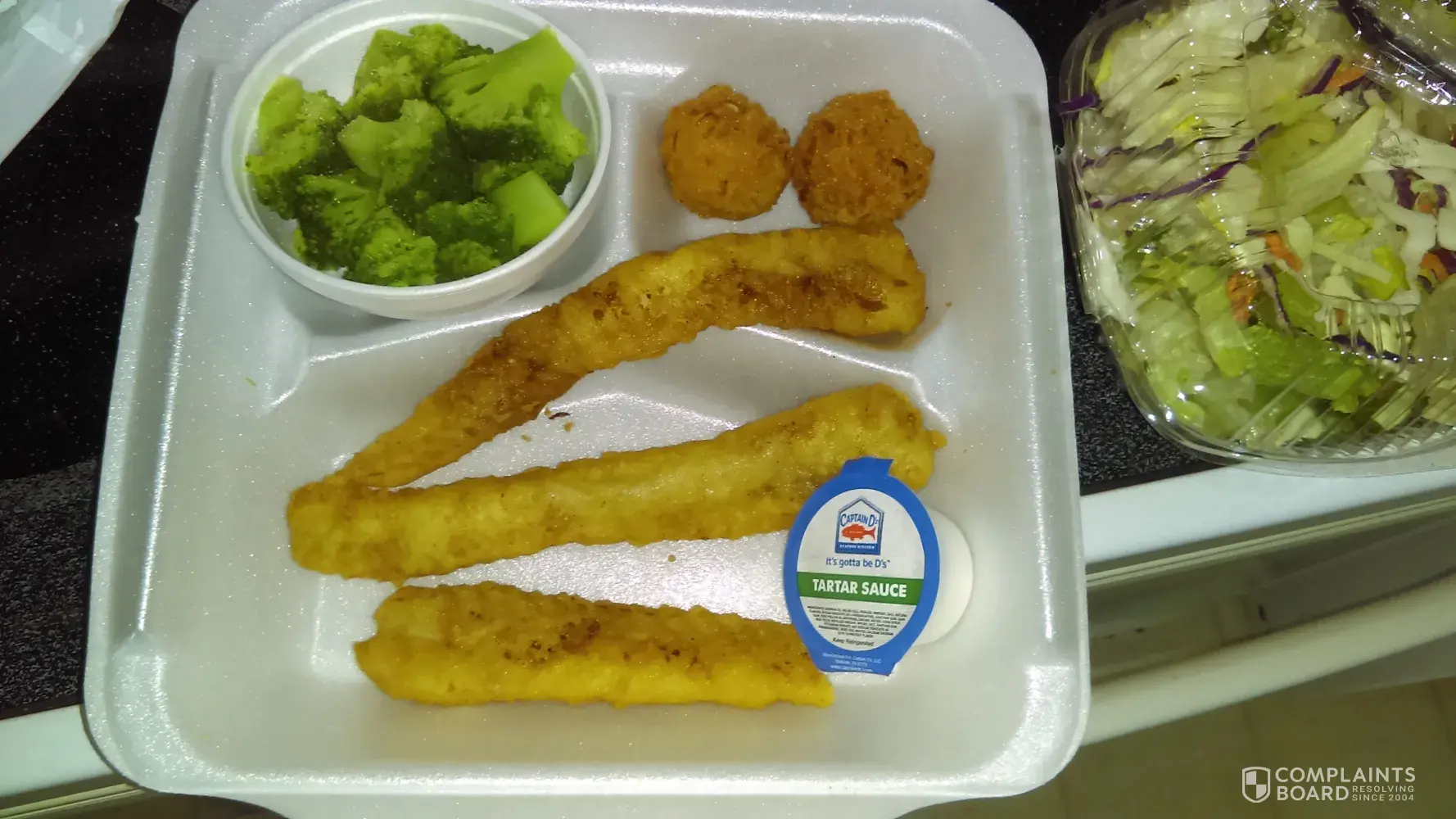 I always have a problem at this captain d's#3513 in birmingham, alabama on centerpoint pkwy. I stopped there today on my way home from work. I ordered the ultimate seafood platter $8.99, cheesecake with topping. I asked that everything be cooked fresh! Only to get home and it was horrible! Fries were old and hard and dark brown. I could not chew them. The popcorn shrimp were just as dark and hard. The meal was disgusting. That was a wasted $12.73. Every time I go I have to take my food back. It really upsets me after working a 10 hour shift when I get home I don't want to leave back out to take food back. This store is the worst!