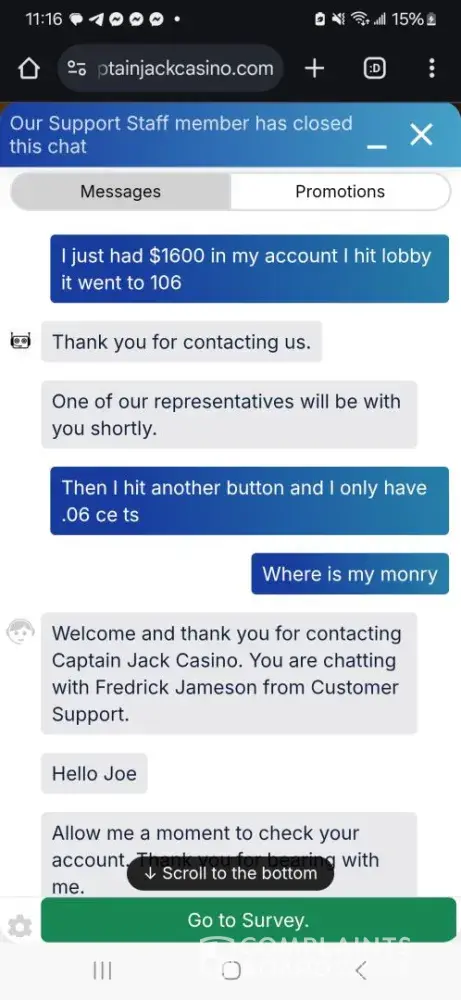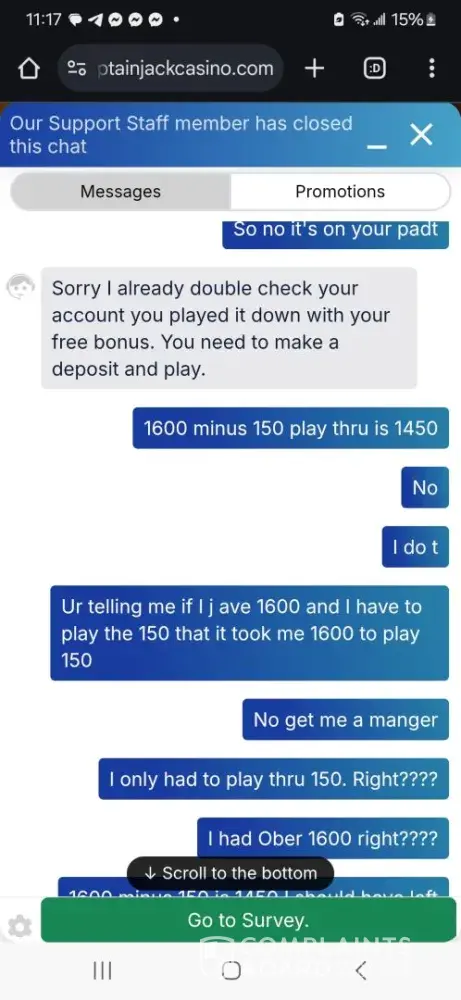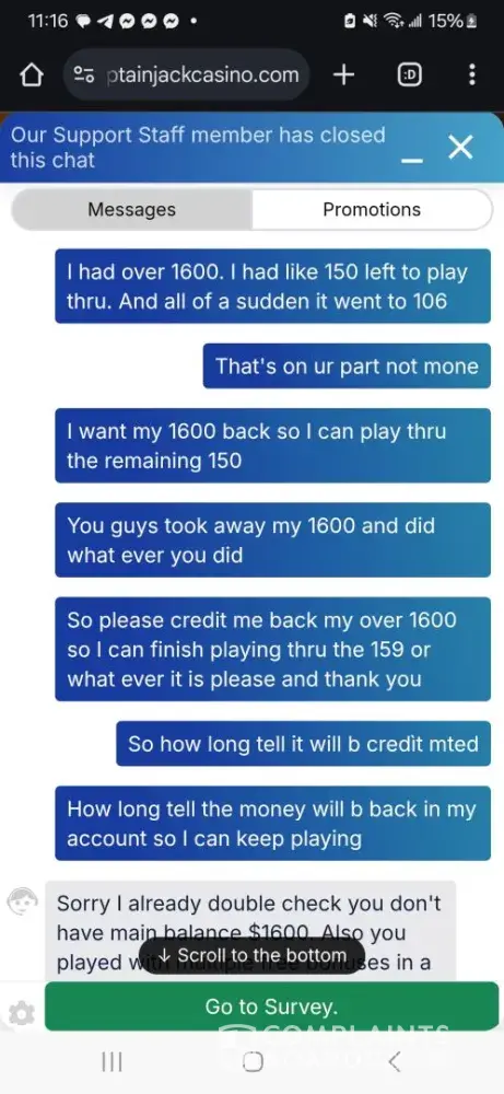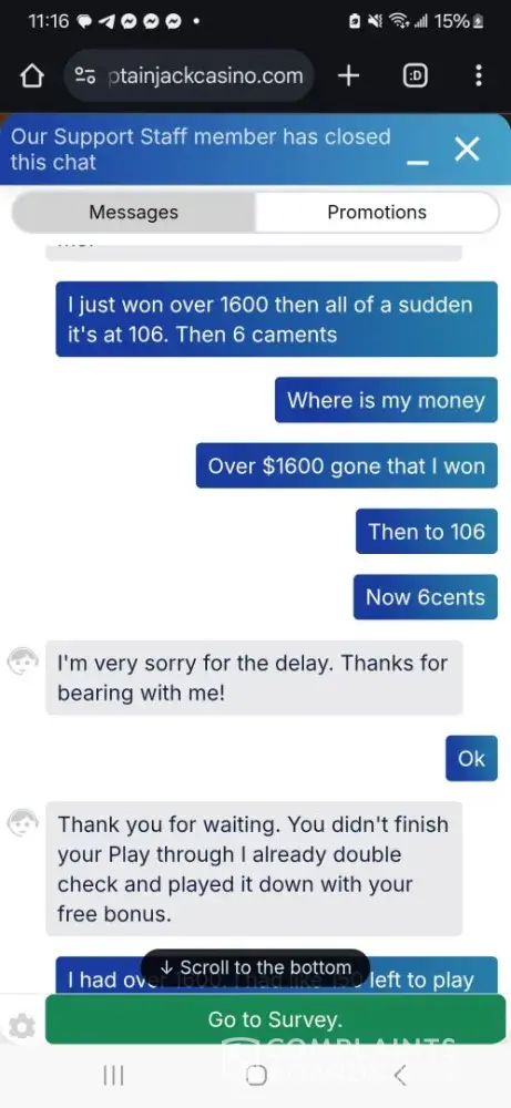 I made a deposit on September 24 at Captain Jack casino i I got a no rules bonus. I won and I wanted to withdraw $850 of my winnings I do know that they take any bonus that you receive out of your winnings which is fine but it's been 18 days and I've been lied to repeatedly about my withdrawal I've done everything they have ask asked it states in their terms and conditions that all withdrawals will be Approved within seven days again it's been 18 days and nothing has been done I've spoken to them on numerous occasions I have screenshots of all my conversations can you help me resolve this issue