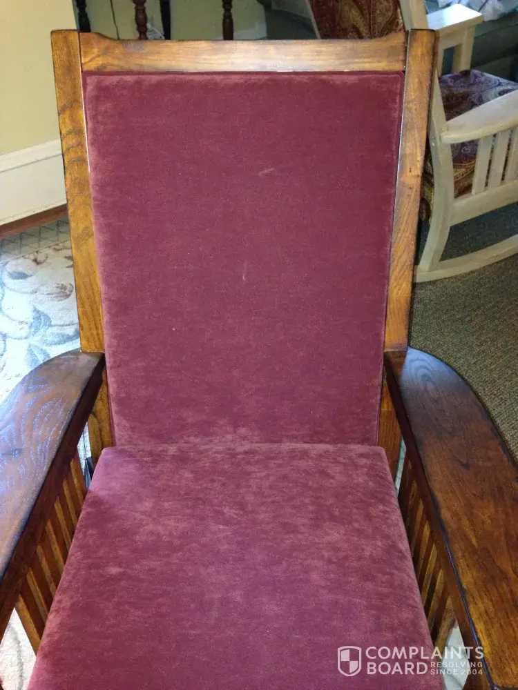 >> Attached, please find photos of holes in the arms and back of a new rocking chair. The chair was purchased on 6/20/17 in Swansea and just removed from the box last night. I also included a copy of the sales slip.
