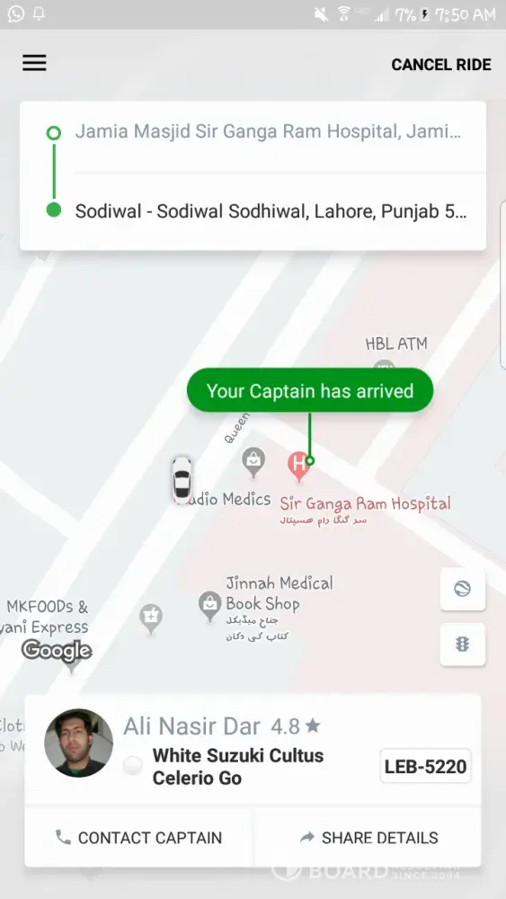 AOA, i booked a ride from westwharf to dha and the phone's battery of the captain was low the phone was switched off. He took the ride and told me to cancel it. When i was cancelling it careem was charging me 172 rs. So i told him i will not cancel its not my mistake. He said he will look into it. And then in my next ride i got cancellation charges of 164 rs and i was charged. This is not fair at all. It was not my mistake