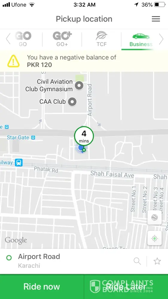 But he didn't want to come. So he blocked me and I got negative balance in my account, so please fix that (120) PKR