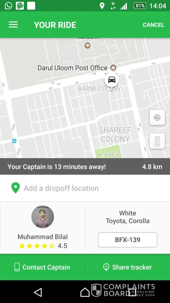 This is complaint from a Captain, you provide affordable ride to customer but to achieved 14 ride in a day is to much hard Target because approximately every ride takes an hour means 14 hours a day which is a hard Target, also very bad road and street condition makes car safety to difficult especially area like Rawalpindi kindly arrange Captain meeting to listen their issues as well