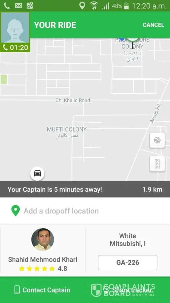 I always book my ride by calling captain of urs. But yesterday night I didn't call or sms just booked it & captain Mr. Shahid Mehmood Kharl owning his car Mitsubishi 660 cc reg num GA 226 came within seconds. I asked to take his money from me and refused to travel due to any personal problem of mine. He was rude after that even taking his money. He was behaving as he is owner of Careem or going back without charges. I was just shocked by his behavior. Kindly its my request to take a serious action against him. As well I am sorry to say if Careem will not take action then I will be putting a case in Consumer Court against him personally and your company also. Hope you will be taking it serious. Waiting for prompt reply.