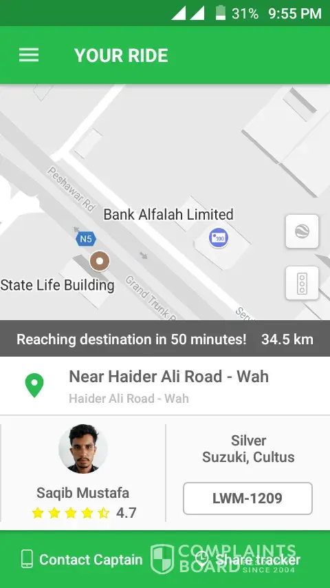 He pick me deawoo bus stop( Thokar niaz baig terminal) lahore. I told him drop me at university of lahore defence road they are just maximum 14 km away from deawoo stop. But your stupid captain" muhammd mahmood ali hussain"choice toomuch long rood. Its almost 41 km. This 26 min away ride waste my 01:30 hour. At last they charge me rupees 616 of his own mistake instead of rupees 204. He waste my too much time and money