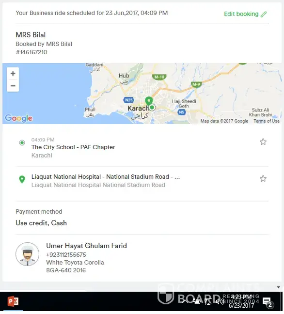 On the same day at 08:25 PM I booked the ride from Defence Road