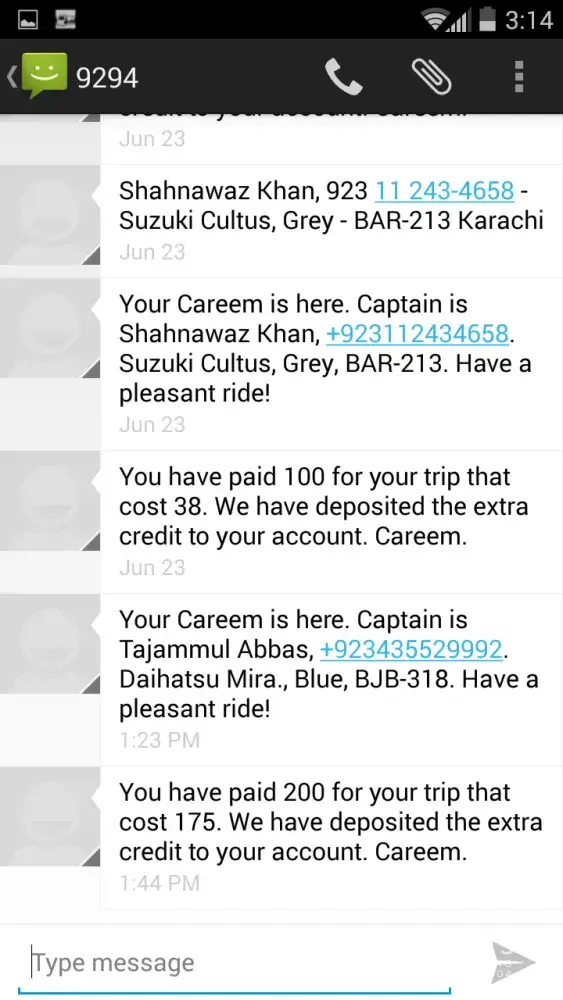 From then, I waited for new ride, but was startled to see intimation about the same Captain. Then I received the message that your Careem captain is here (refer screen shot having text messages at 1:23 pm), I immediately called the Careem helpline (refer screen shot having time 1:23 pm) to ask about this strange pattern of service, when I was assured that the captain will be changed then how come that Captain is approaching me. They said that you are to follow-up with the Captain, I was rude enough to said that where should I look for him, in whole Karachi, when he already had refused me to come to my gate. There was no satisfactory response for me. I think Careem people were expecting me to cancel the ride so that they won’t be blamed for their unethical and unprofessional service, that I didn’t.