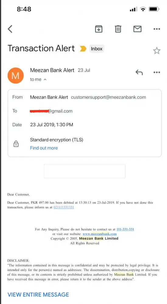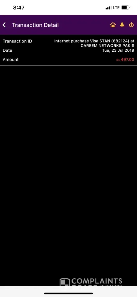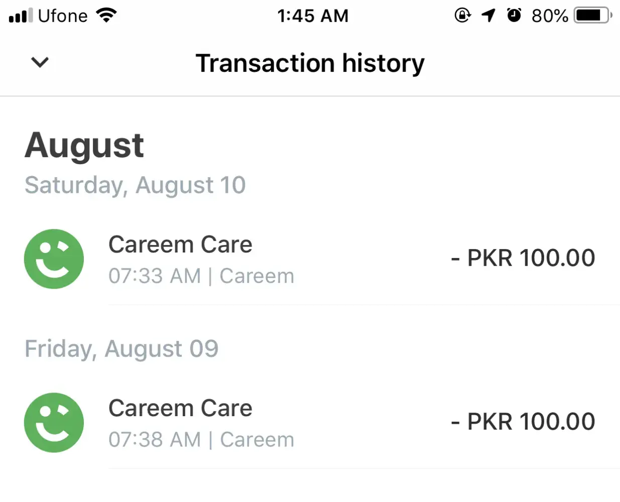 I have been using careem services for last few years. Enough time to trust careem with my personal credentials of credit/debit cards. Few days after adding my meezan bank's debit card as an payment method in careem ios application, on 23rd of july 2019 I received a message from meezan bank regarding debit of electronic funds of pkr 497 from my account against internet purchase careem networks pakistan, followed by a meezan bank's email informing deduction of funds from my account.