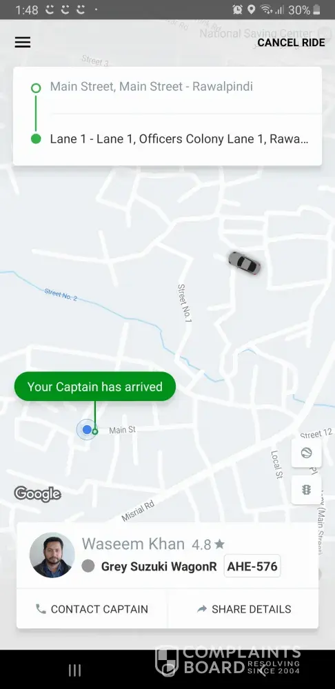 Instantly we got the sign that careem captain is nearby. We called him and finally got the ride.