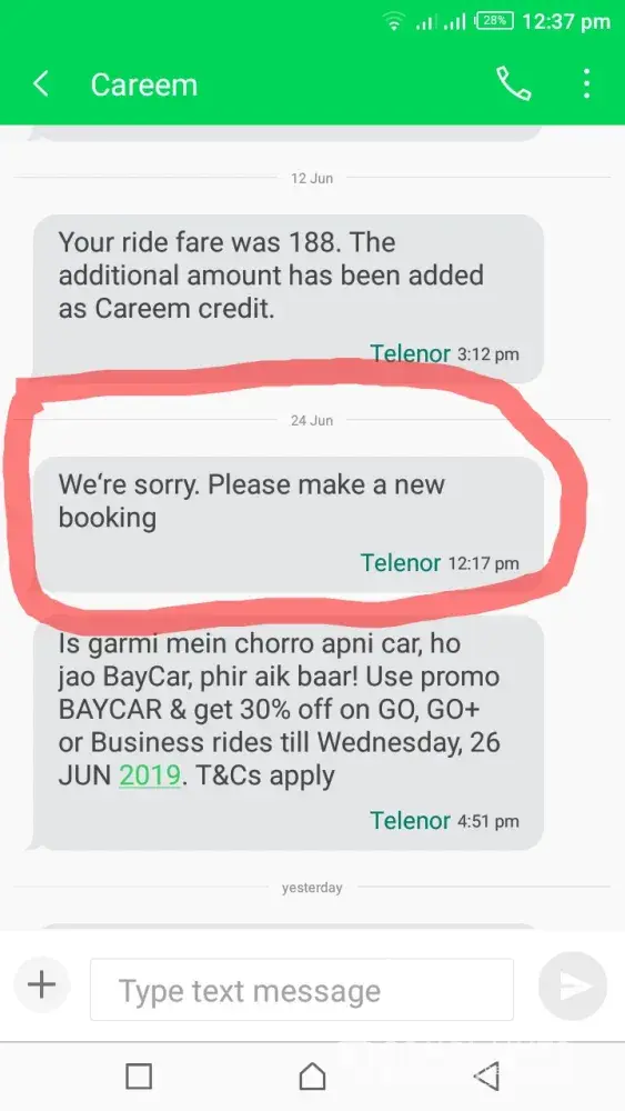 Kindly improve your service. or many others like me will prefer Uber over Careem since they have no such issues.