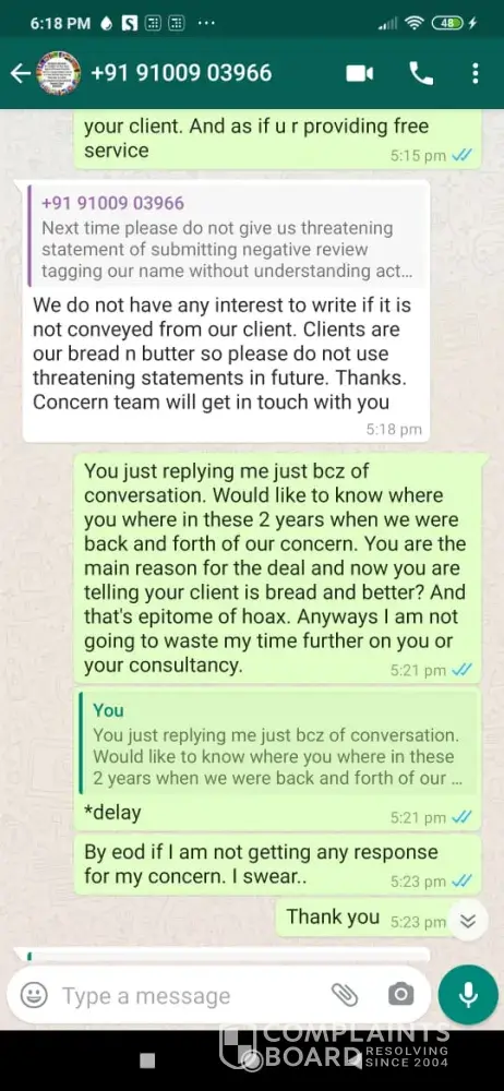 Look at the arrogance of Shubi shah in the coversation chat. when i was looking for service she is threating me with bond completion and still asking me to pay more money.