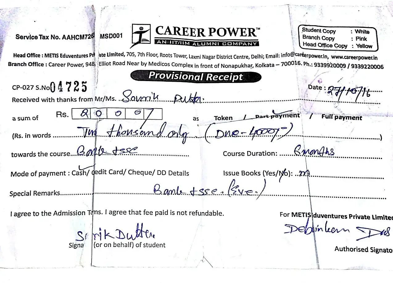 I am Souvik dutta student of Career Power writing to request you to refund of my security deposit. The security deposit amount rs 2000 was charged me at the time of admission. But still now from your end kolkata branch could not provide a single class. when ever i visited your kolkata branch i was refused every time. your employee DEBKINKAR DAS and BABITA SING both were missed communicate every time .