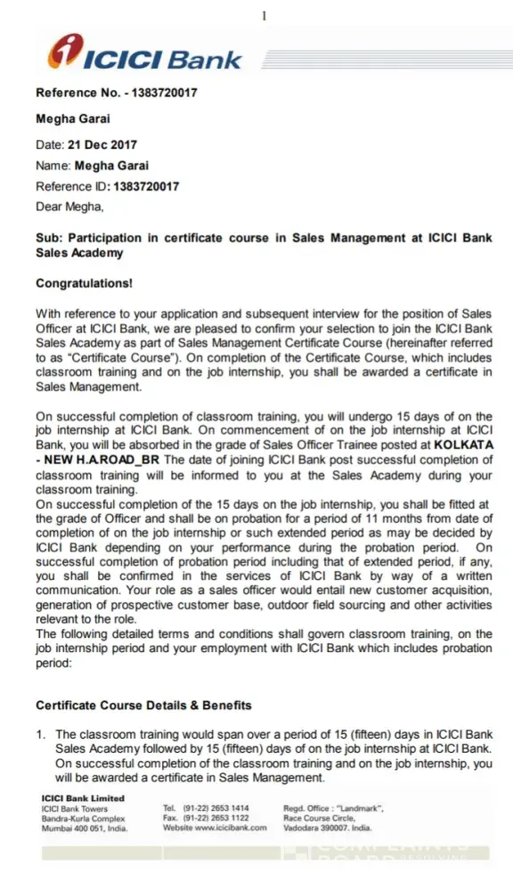 Me Megha Garai, i Got a job In ICICI Bank by Careergraph Pvt Ltd.