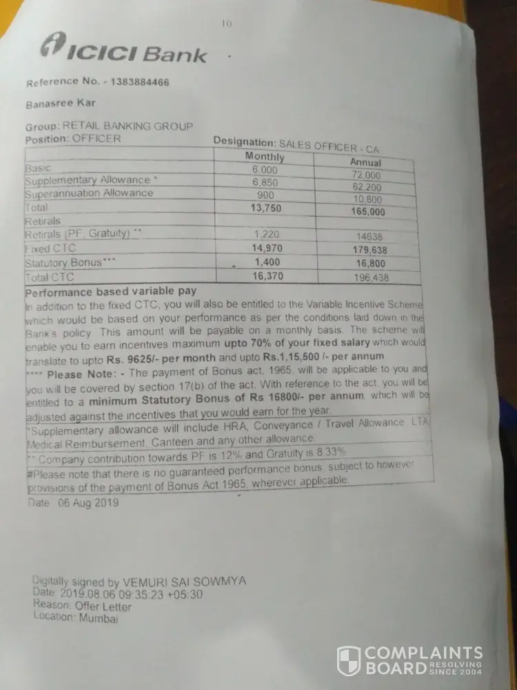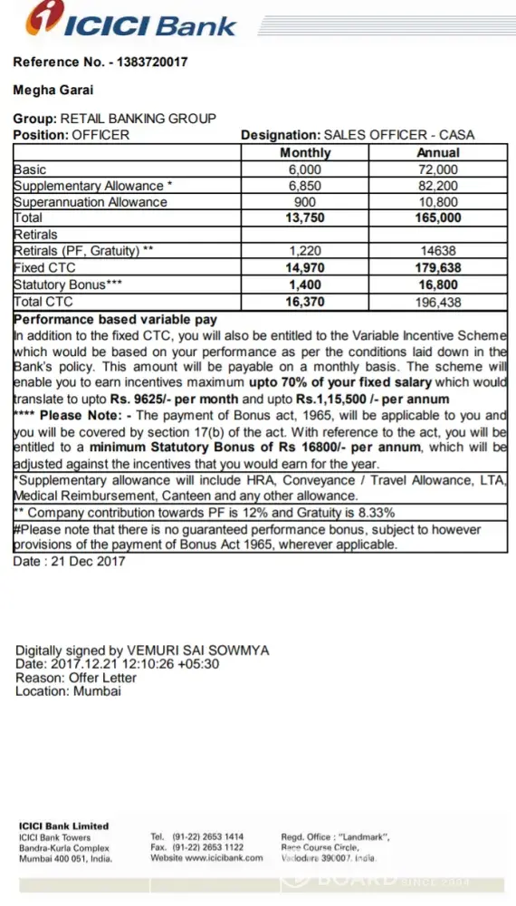 After 21 days training i got the first Campussing in ICICI Bank. and i have been selected for SO profile. Now my Monthly CTC 16, 370/-