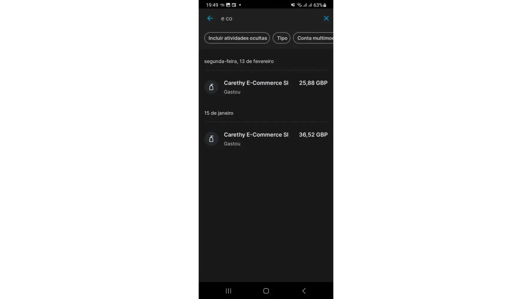 Paguei £36,52 e no dia 13/02 debitaram mais £25,88.