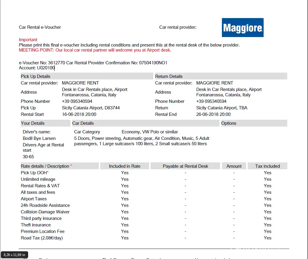 Please print this final e-voucher including rental conditions and present this at the rental desk of the below provider.