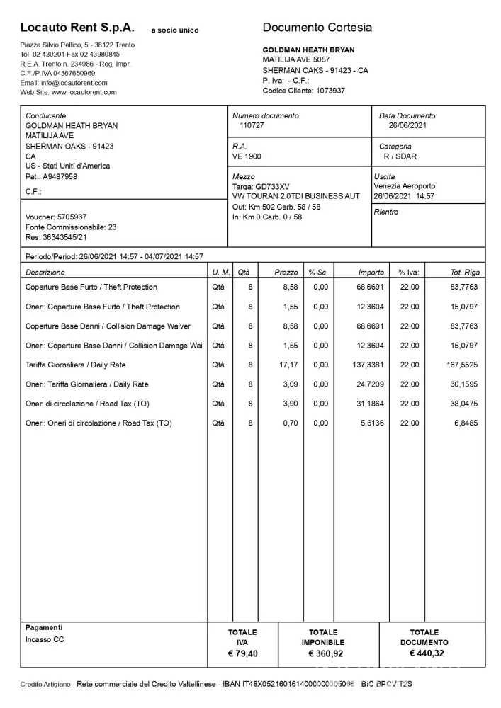 On June 26th I rented a car from Locautrorent Italy. When returning the car, there was no mention of damages. All of a sudden, I get an invoice for damages. I have written them several emails and only received one response from them. In the emails I have requested details of the damages and pictures but to no avail. The person who sent out the emails is Caterina.