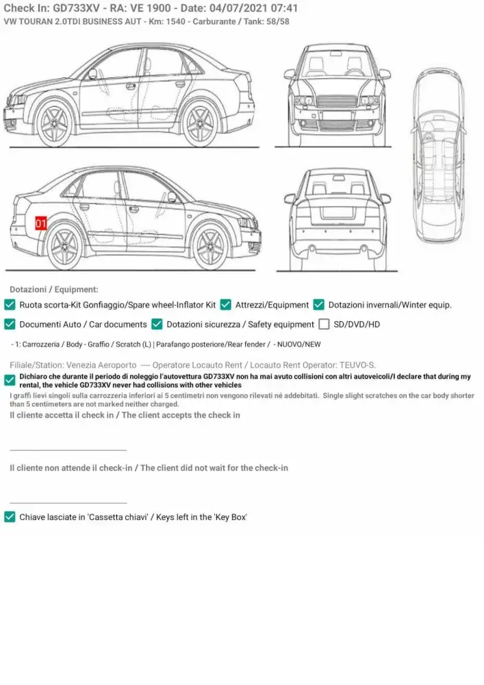 With reference to your request, please be informed that, as per our first message (July 9th at 04.16 p.m) a new damage on the rear fender not pre-existant was found on the vehicle you rented, and charged in compliance with our Terms and Conditions.