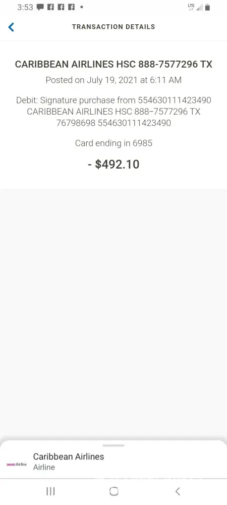 Caribbean Airlines Flight 458 july 18/21 4x4vcw
