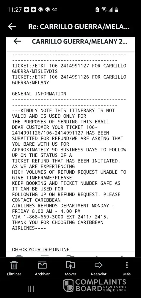 Caribbean Airlines Buelo cancelado por la aerolínea,10 meses que solicite mi reembolso y nada
