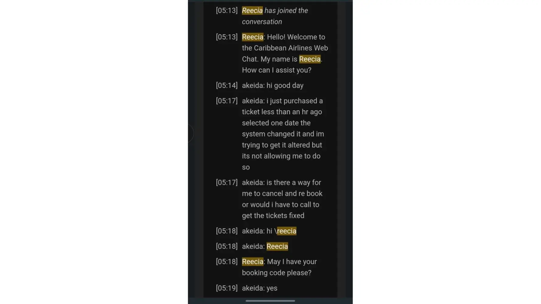 After waiting a couple days of not having a resolution I reached out via online chat again on March 24th and so happen to get the same agent who informed me that seats have become available for the dates I originally wanted but I needed to pay $150ttd for the change. I then informed her I don't see why I need to pay for an error that was not on my end and that I wont be paying but I would like to have the dates changed if not refund me for the tickets or ill go through a dispute with my back. After going back and forth I received a new email with the dates that I wanted, she said a Rep would reach out in 24-48 hours no one did but I did receive the email with the change, so I assumed it was fixed in the back end and there was no need for a rep. to contact me.