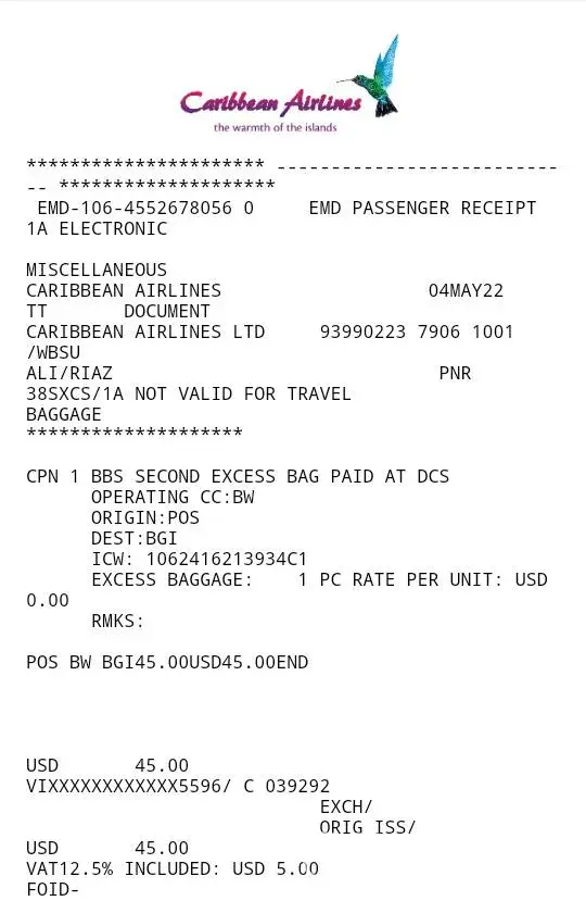 Desired outcome: Disappointed with the Caribbean Airlines' practices, as I was trying to support the Caribbean motto," out of many people, we are all one."