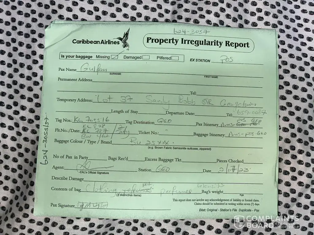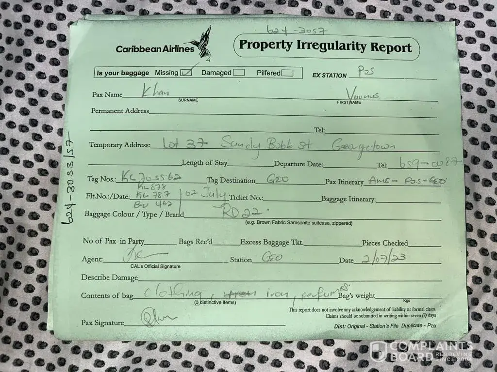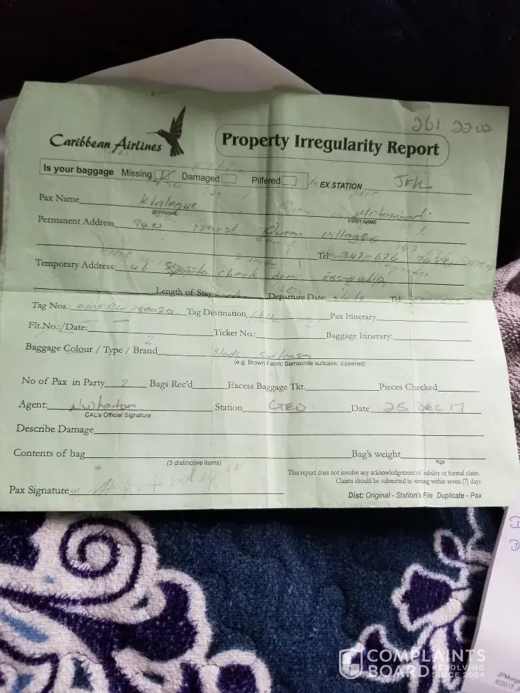 Caribbean Airlines - articles stolen from luggage 1