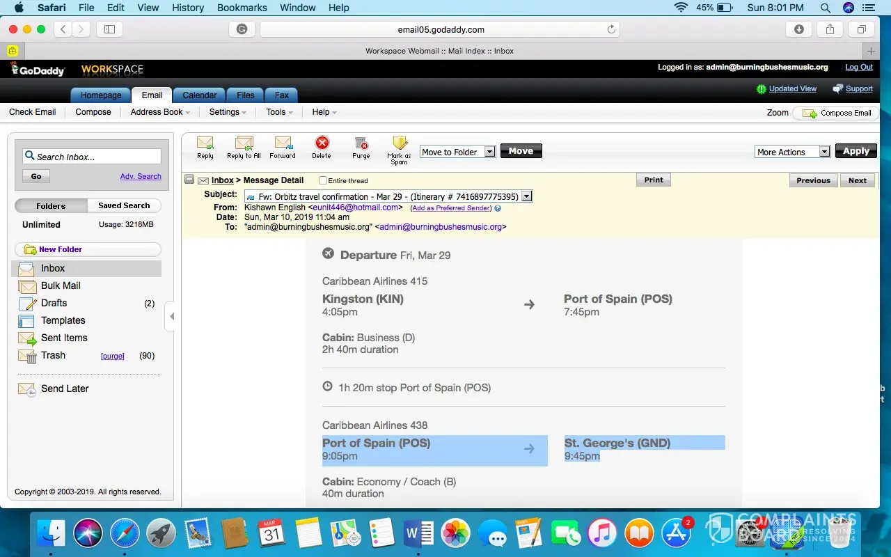 3. Caribbean Airlines emails