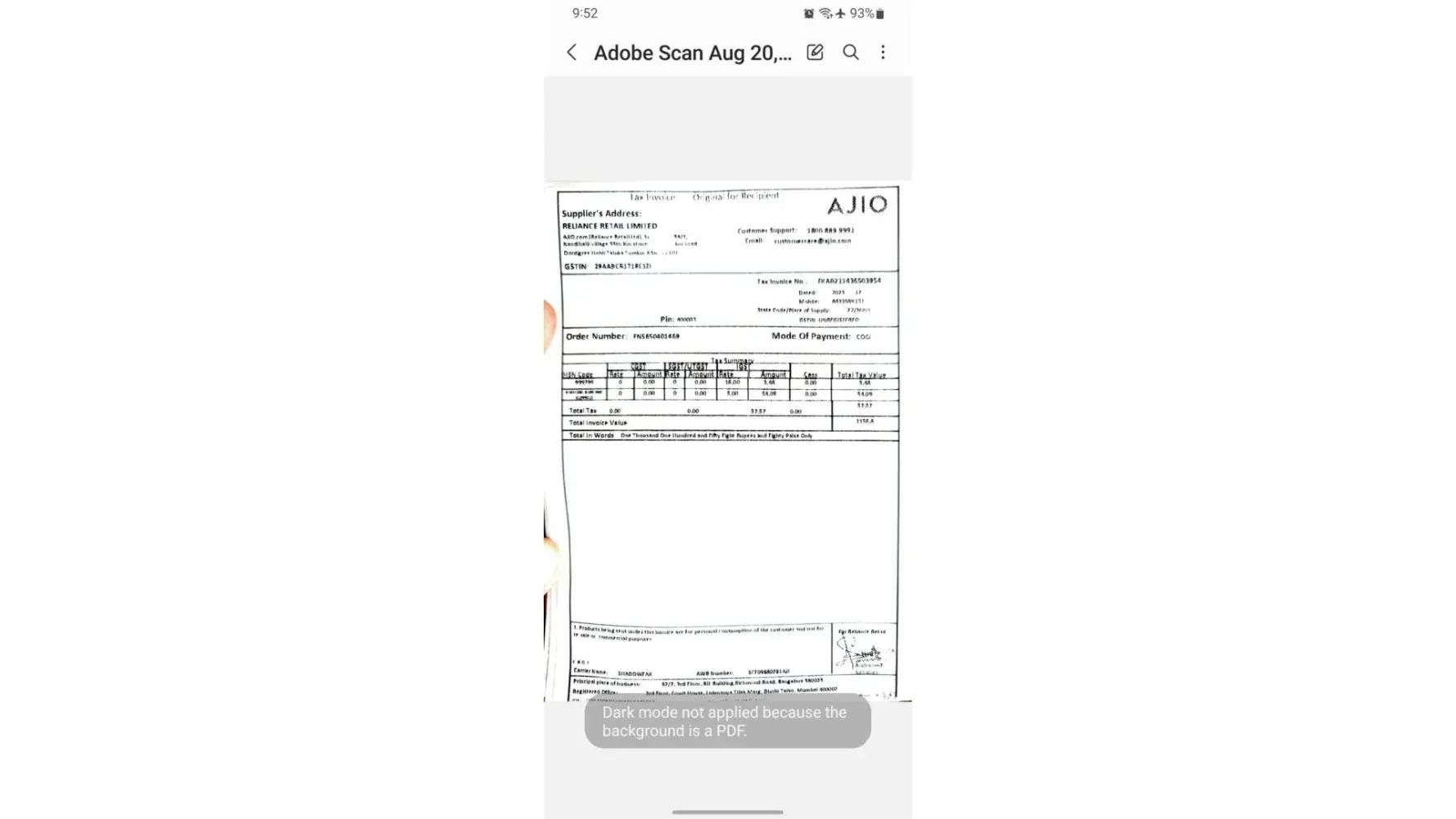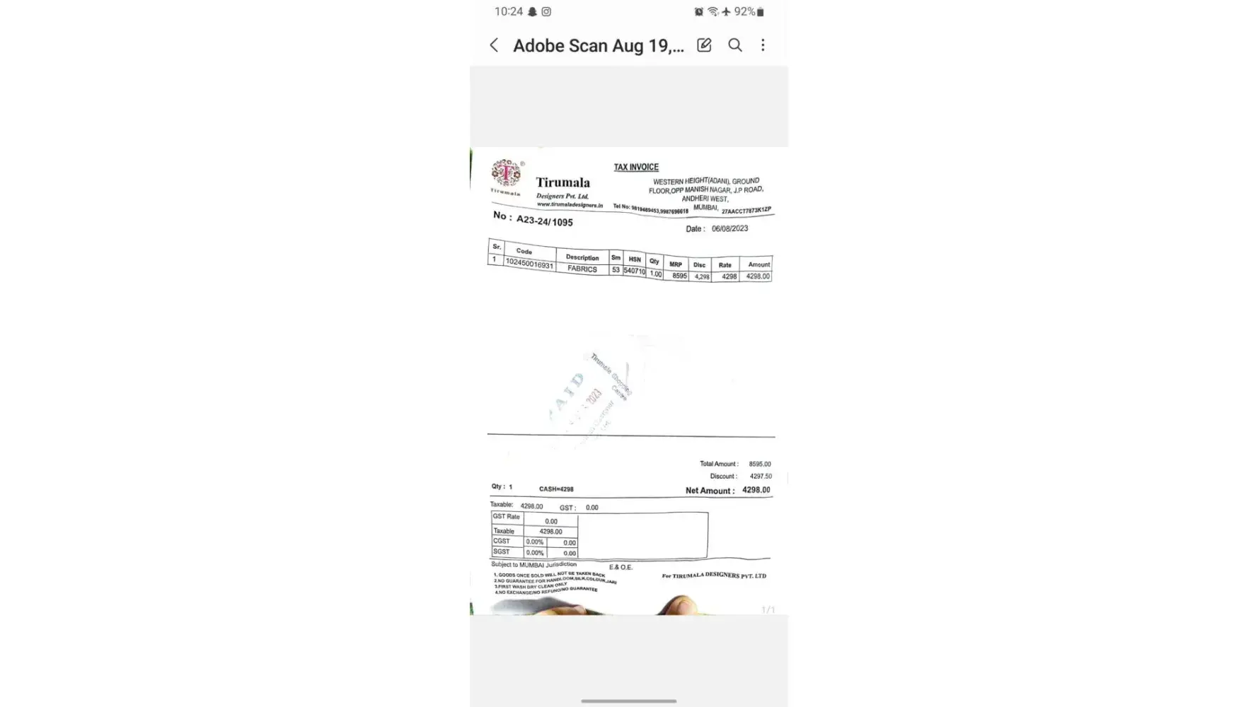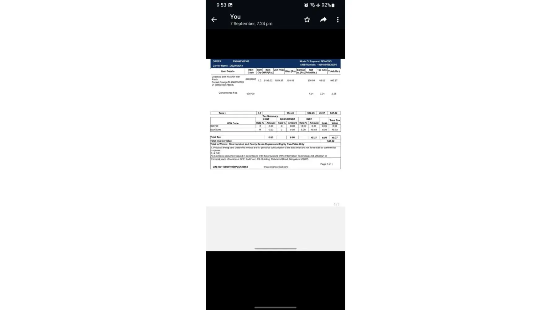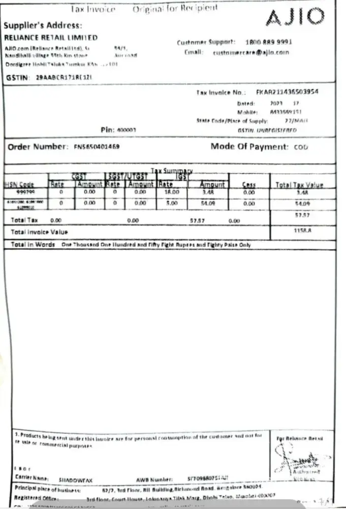 The reference number is been provided and all the details regarding missing luggage is also provided (bill).