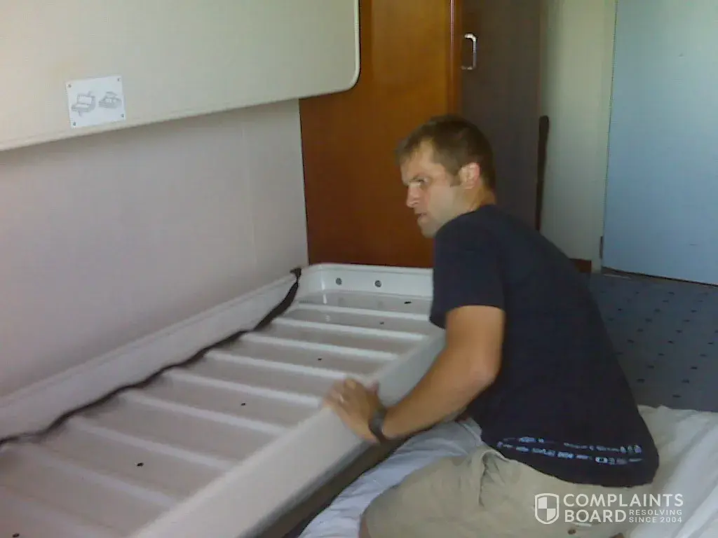 When I called Caribbean Cruise Line immediately after the cruise to complain I was transferred twice to "Customer SErvice". "JOan" in customer service told me that no one gets a mini-bar and that I was told I would be in bunkbeds. WHAT? I'm not a ###. When I asked her to check who that was who supposedly called me in May to confirm that we were in bunkbeds she would not do it. She kept saying "But how was the food". I said that I'm 120 lbs and food isn't the center of my life. She said "Did you have the smoked salmon?" I said "No, there was no salmon" then she started saying how she had the smoked salmon everyday. I said, "Joan, please don't change the point, everything else being the same I paid extra to be in a bed with my husband and you did not give me that". Then Joan said "Have you talked to compliance"? I said "Joan, I am in the parking lot of the cruiseship parking now. No, I haven't talked to anyone, that's why I'm calling you!" She said there was nothing she could do and gave me an address to write the compliance department. If you think I'm kidding about any of this, please see the pics. NEVER EVER EVER EVER book with Caribbean Cruise Line.