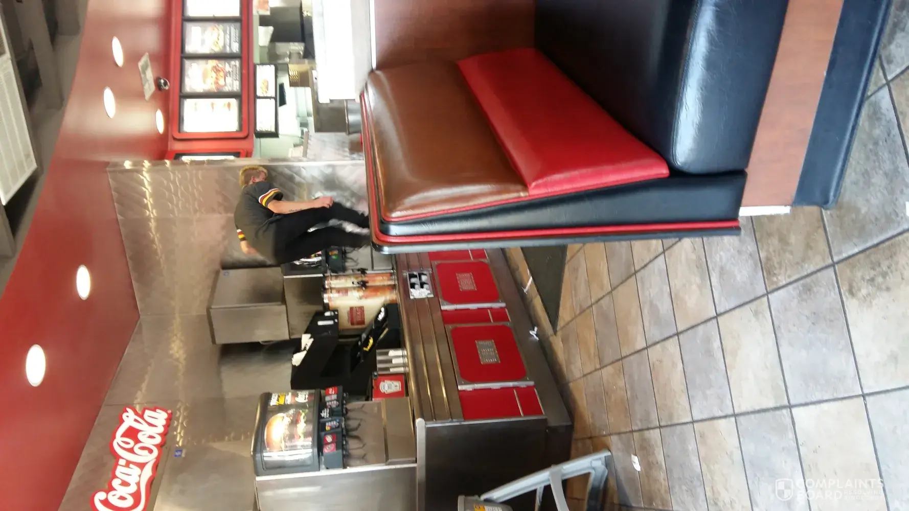 I visited the Carls Jr in Tahlequah Ok, on 5/24/18 at around 1:00 pm. Upon entering the building I noticed someone was filing the ice machines (both that I later found out were completly empty). Instead of using the step ladder that was right next to him I watched a shift manger named Dakota, standing on the counter tops in dirty boots fill the ice machine. Not only did I watch him get on and off the counter tops many of times he also decided to dance on them! I was in complete disgust and disbelief that someone would do this. So I go on to order my food ( I was not greeted or anything by anyone) as I look around i notice every table was dirty as well as food all over the floors! Myself and my dad were the only people in the resturant at the time. When our order was ready the same manager brought us our food. he forcefully pushed it onto our table and immediatley left not asking if we needed anything else like condiments Ect... so, I went back up to the counter and asked for some honey mustard. I ordered the 3 piece chicken tenders, I only recieved 2, so again i go back up to the counter and i asked for another one. The gentlemen that helped me this time asked if there was a problem which I responded to asking for another chicken tender. He got me another one but said nothing to me no apology for the inconvience or anything. All in all the staff here was very unprofessional and unpleasent. I didnt get greeted upon apporaching the counter and there was not one smiling face to be seen. I use to come here quite a bit awhile back ago but after my last encounter I will not be going back . My main concern is that the shift manager is informed about standing on counter tops where customers set their food and drinks and that they keep a more clean place.