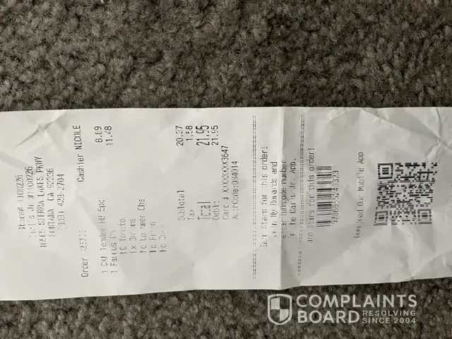 Read full complaintThe food is terrible, customer service sucks!!