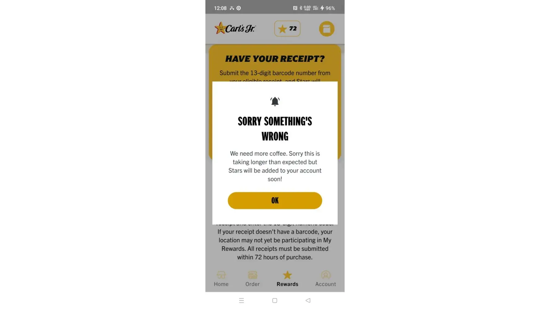 Stars will be added to your account soon!"