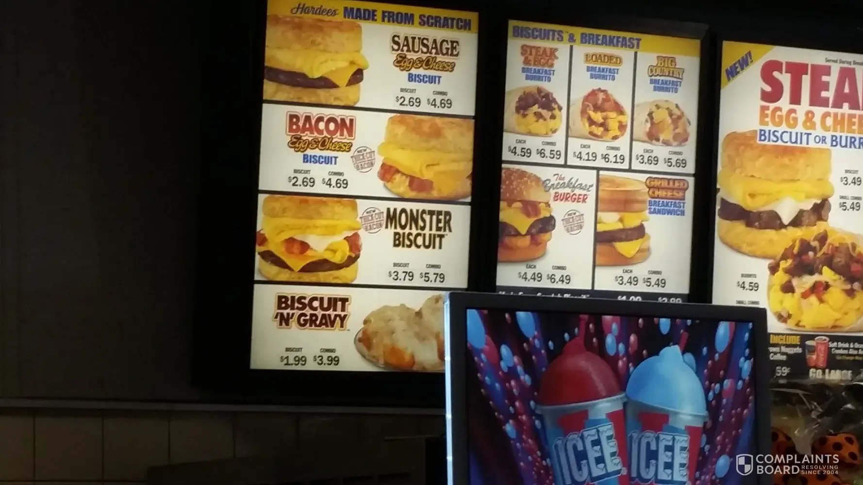 In a dismissive manner the manager said there was nothing he could do and laughed and walked off. Not only is there an extra 12 dollars out of my account but the service and the food was poor. I grew up eating hardees and have never had to worry about these issues before. Very highly disappointed