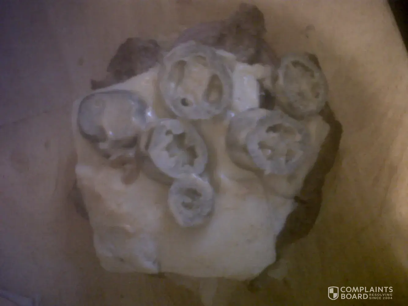 Read full complaint and 4 commentsburnt, dry, no sauce, fish bone