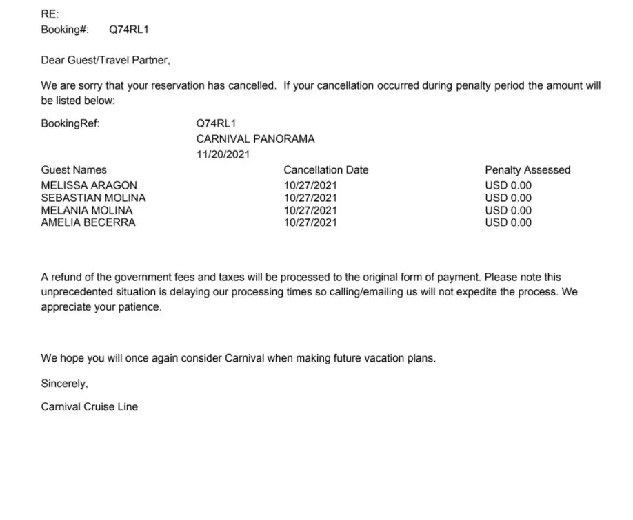 Carnival cancelled cruise