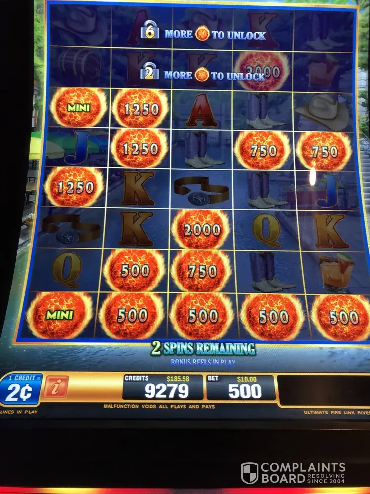 I played the Fire Line Slot game and won two small jackpots. I was playing two cent bet on $5 bet so my bet was $10. When you win a bonus all bonus amounts including the mini, minor and major all are counted together for credits won then those credits are then doubled because of the 2 cent bet. So I hit a minor jackpot for 100.00 and 89.00 additional dollars on the fire balls. So the credits would be $189.00 x 2 = $378.00 The machine did not double the 100.00 minor I showed them on video. They refused to pay me the extra $100.