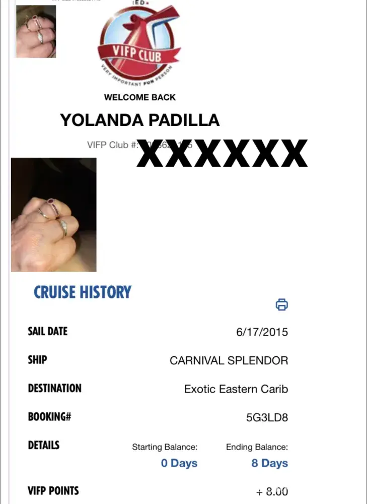 I have sent a detailed email and nothing! My cruise manager is ERIC Carnival Freedom March 26th .Booking number M09RQ7 stateroom 8350 Group with Carlene Rhodes