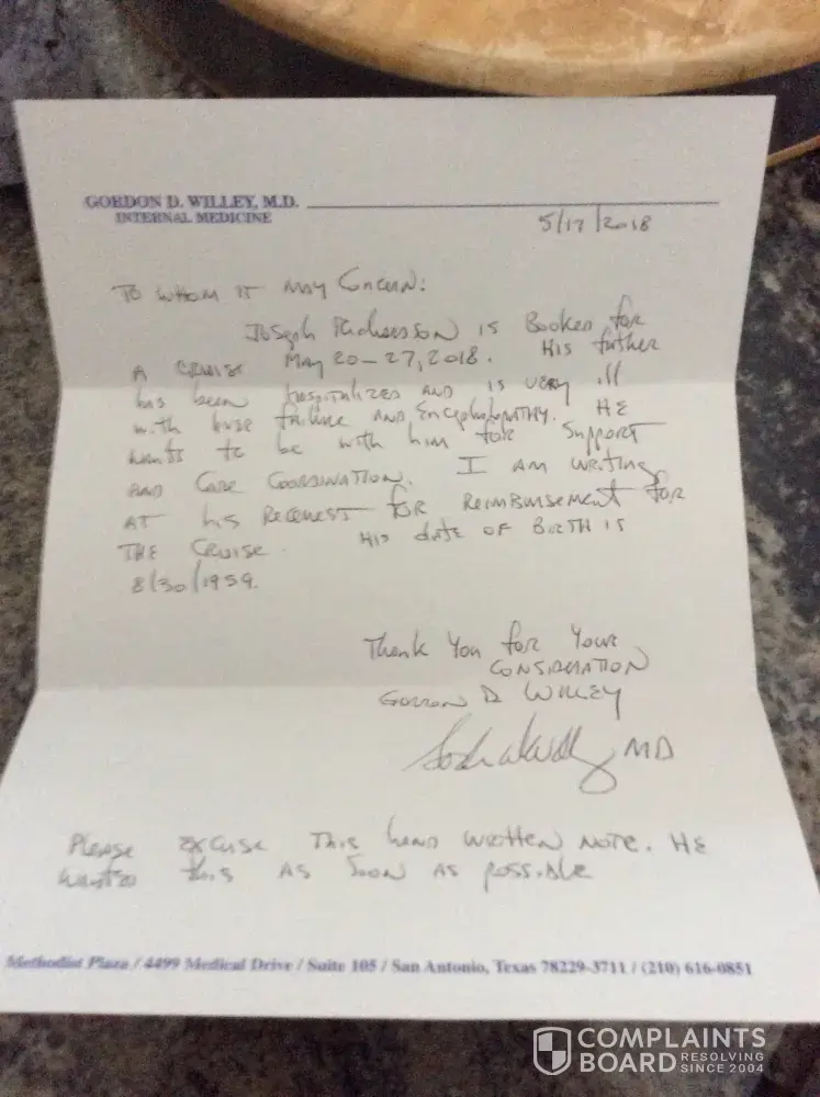 We still as a group wish to eventually take the 5-day cruise stated above, perhaps later using the funds intended for this trip. We ask to be given the chance to make right this missed opportunity to sail THE FUN SHIP.