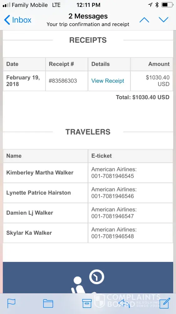 The last picture flossed is what the airlines gave me to show some kind of proof of flight being delayed and when it departed and arrive in Miami causing us to miss the ship.