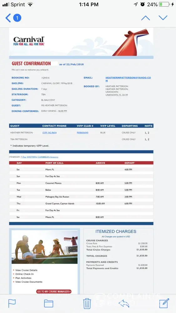 I do not believe the cruise line just constantly take ppl money and give them their back and repeatedly says I apologize.
