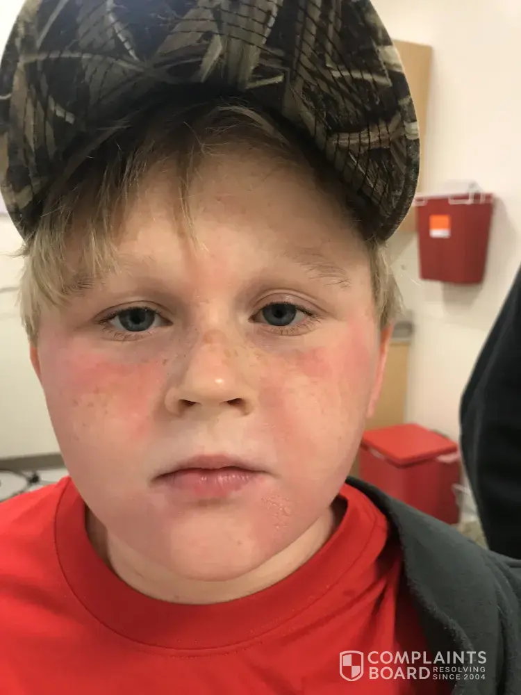 This is the 2nd time I have emailed, I didn't get a response so not sure if it was received . I will attach a picture of his face, he didn't want me to take pictures of his body. Unfortunately I didn't get pictures of my luggage before the man took it and gave us a cheap replacement . As far as my sons shoe, they didn't seem to care it was missing much less not sure what clothes are missing. He had to wear tennis shoes or go barefoot the entire time since his new flip flop was gone. Not sure why they even went in his suitcase.