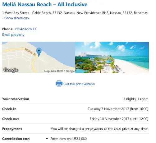 2. we shall spend 4 full days on Nassau between 07.10. - 10.10.2017, please see enclosed our booking of hotel as well we flight tickets as a proof. We are sure you understand, we do not wish to come to the same island "Nassau" after 4 days once more by cruise ship, for us it is useless.