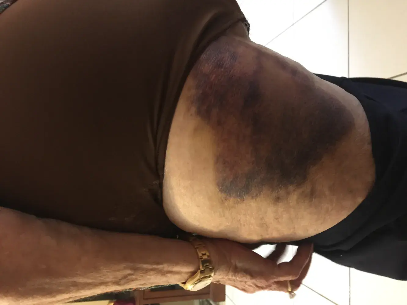 As the days passed, mom was in a great deal of pain and she developed a very large hematoma on her left upper outer thigh, resulting in the ER visit.