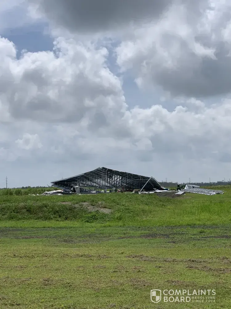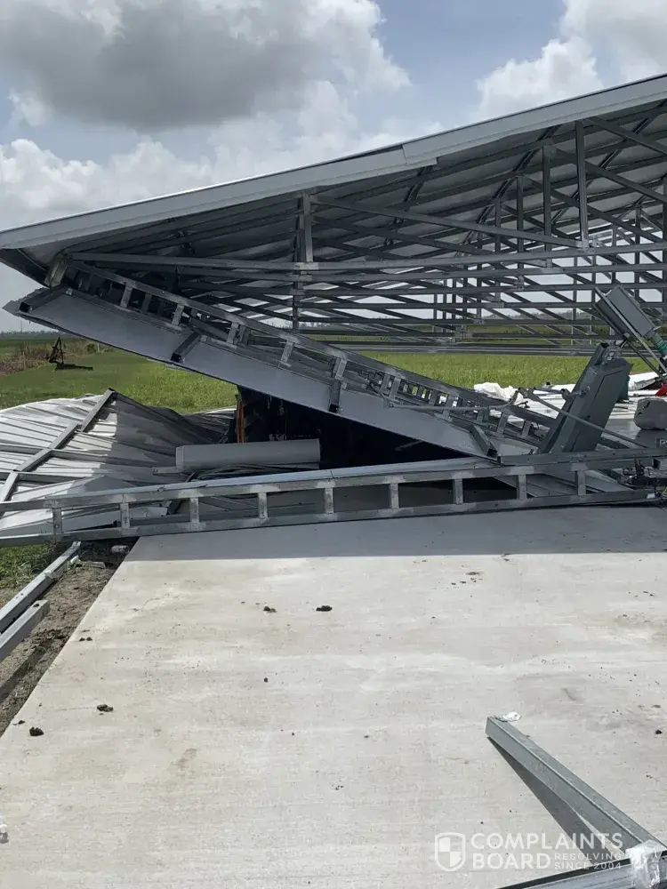 Building completely collapse in hurricane Ida. Other metal buildings in my neighborhood only had gutter damage. After the building collapsed you could clearly see that the connection points were not fastened correctly. The cheap self tapping screw did not penetrate the inside metal tube. So it was not going to support the roof and walls correctly. The bolts on the bottom tube just pulled right through. See pictures.