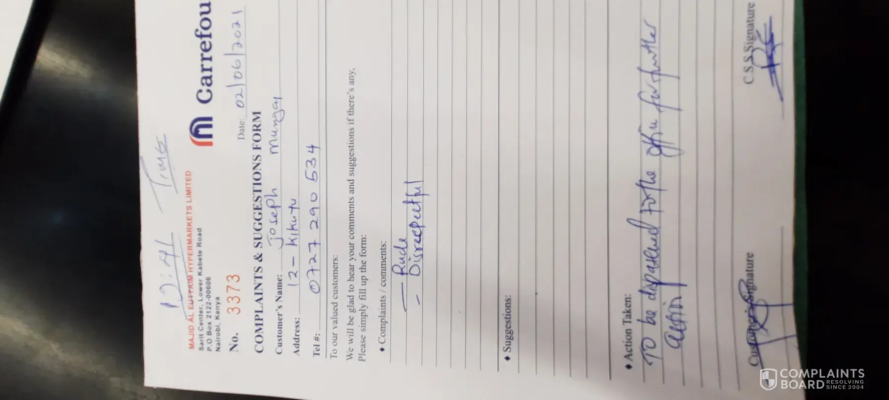 I hereby request you to act on the situation without having me to pay an additional amount for the promises you have made soon if you want me as a consumer and others to believe that Carrefour still has some professional ethics.