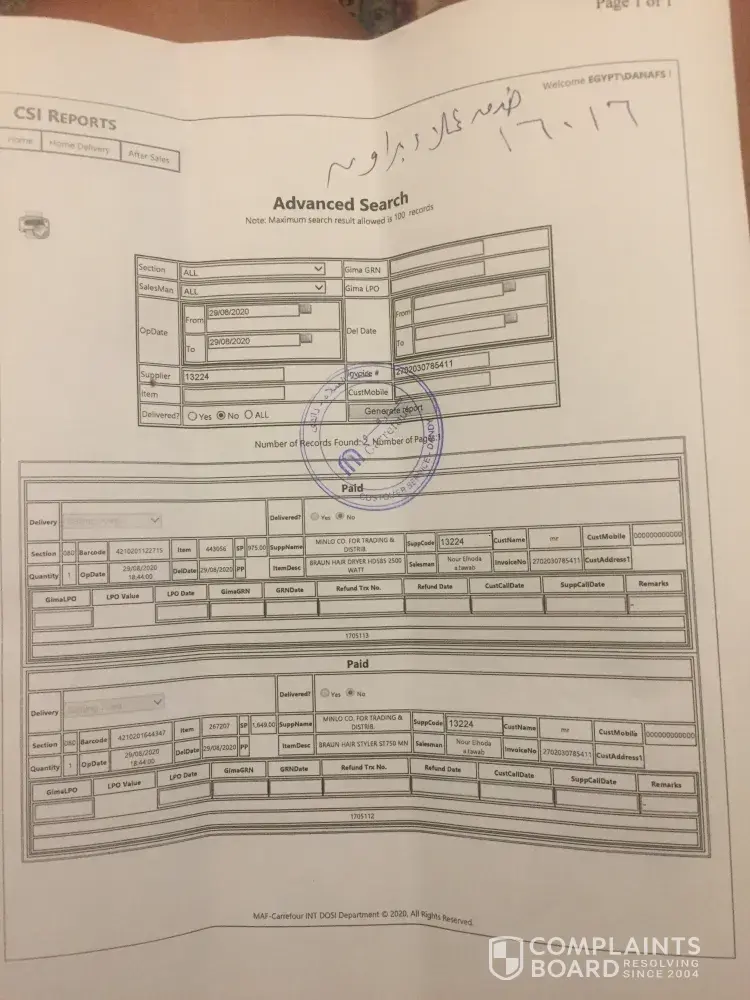 I purchased two items from yas mall carrefour, the sales guy showed us different item and in the receipt mentioned different so I cancelled that one. For the second item I kept on calling customer service but no proper support was given as they keep on mentioning we don't have update from the supplier which is not my concern and the customer service is only for listening and not for giving solution to customer. Even after 1 week I didn't get my item as after one week they don't have any update from the supplier as they said.