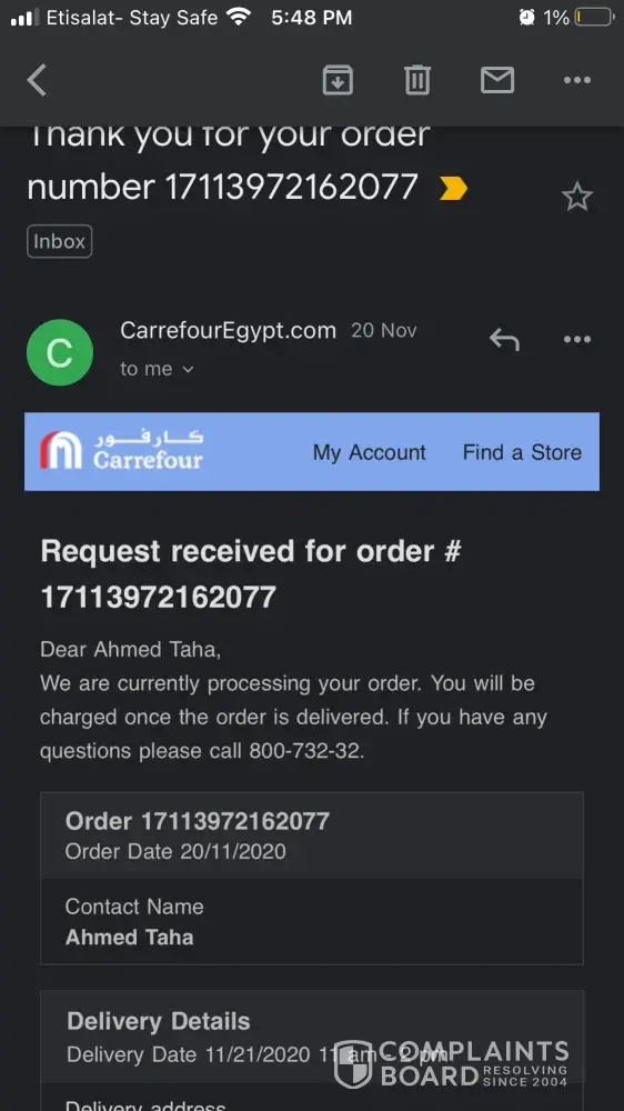 I ordered on Carrefour Online (Egypt) a