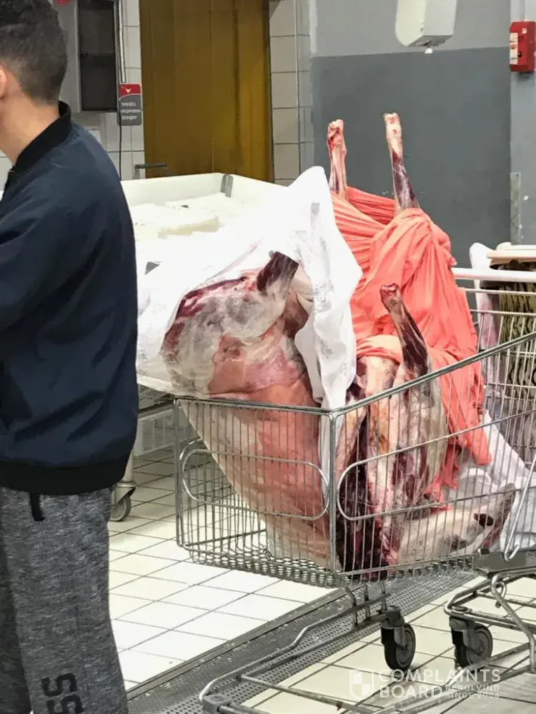 As an expat of 20 years and regular local to this store I am absolutely disgusted at the lack of any hygiene standards. I visited the store today to find customers using the store's carts to wheel in sheep they had slaughtered for Eid Al Adha for the store butcher to cut up. As you will see in the photos, raw dead animals are in the carts - this is a dangerous risk to all customers for ecoli and other potential food poisoning. This is absolutely disgusting. I have warned all friends, family and clients on my social media networks to avoid your store's trolleys until you have made a public announcement on how you intend to sanitise the store.